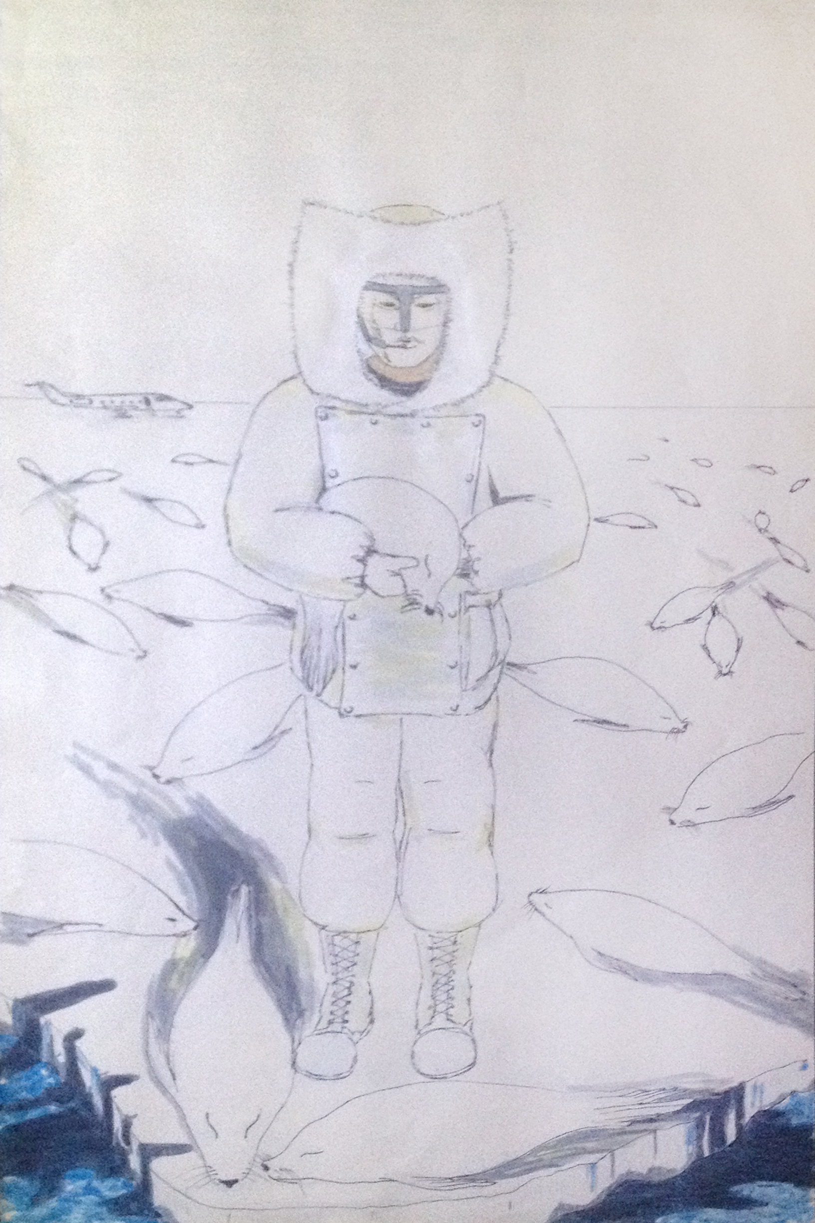 Click to hear opening theme score: “Whale Thoughts of One” – note: 1 minute of whale song precedes, then melds with the music of man, (guitar).
